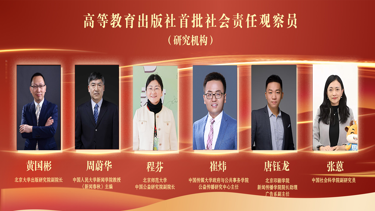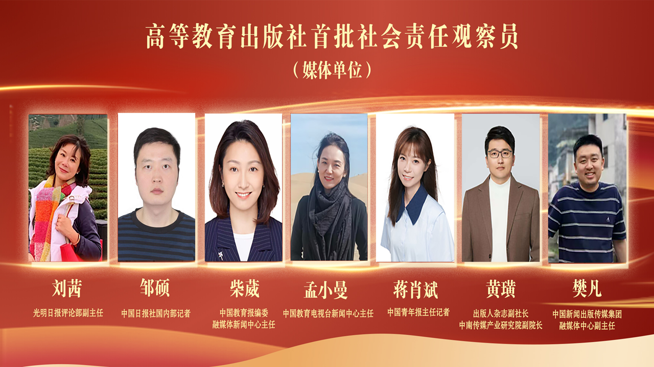 在探索社会责任长效机制方面,高等教育出版社再开行业先河,正式设立“社会责任观察员”制度,于本次活动上公布了首批社会责任观察员名单并颁发了聘书。首批受聘的观察员既包括北京大学、中国人民大学、北京师范大学、中国传媒大学、北京印刷学院、中国社科院等研究机构的学者,也涵盖了多家媒体机构的资深记者。根据机制设计,观察员将从监督评价、需求反馈、传播引导三个维度发挥作用,为高教社社会责任工作建言献策。北京大学出版研究院副院长黄国彬和中国教育报编委、融媒体新闻中心主任柴葳作为观察员代表发言,表示将秉持专业精神,共同推动出版行业履责建设。