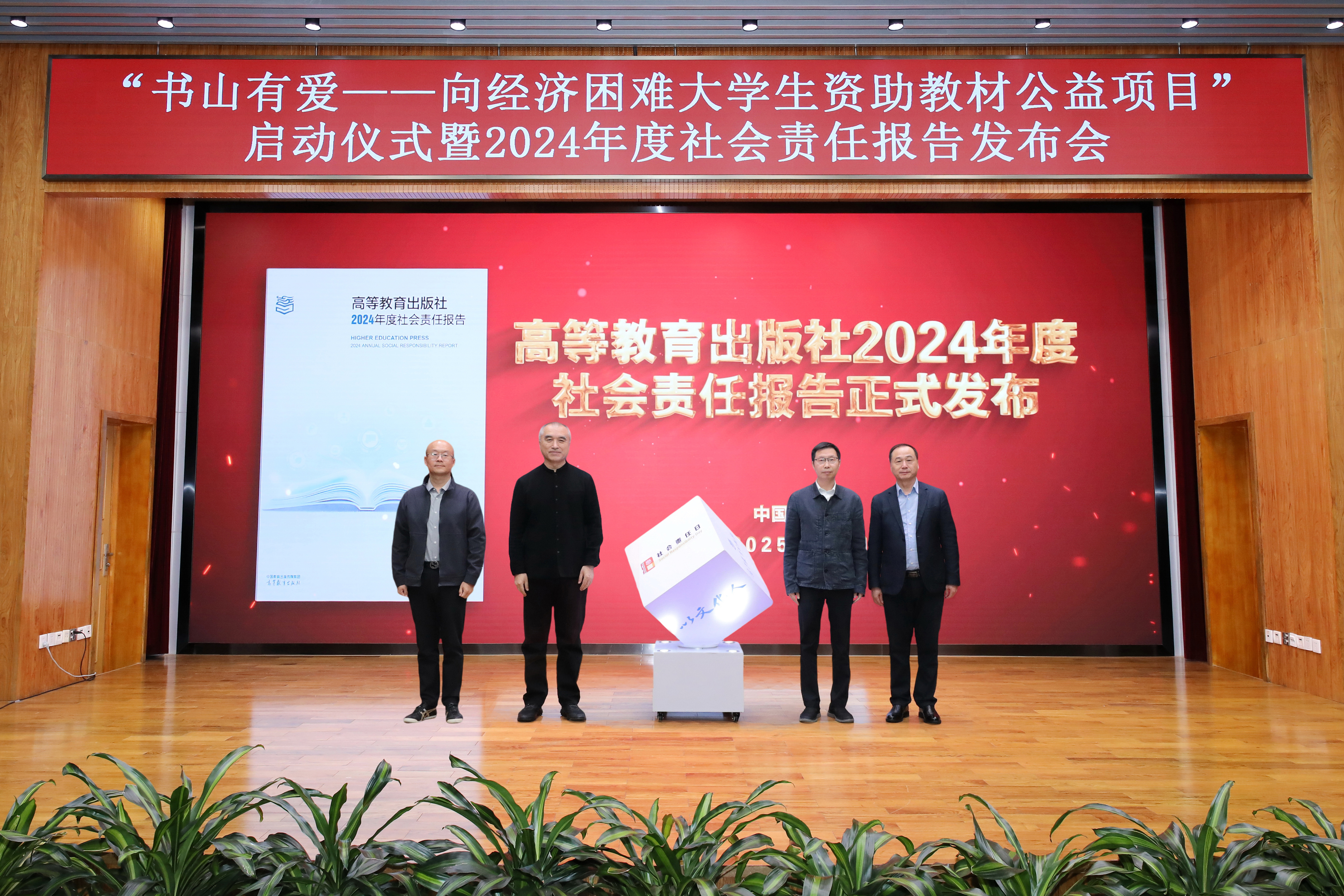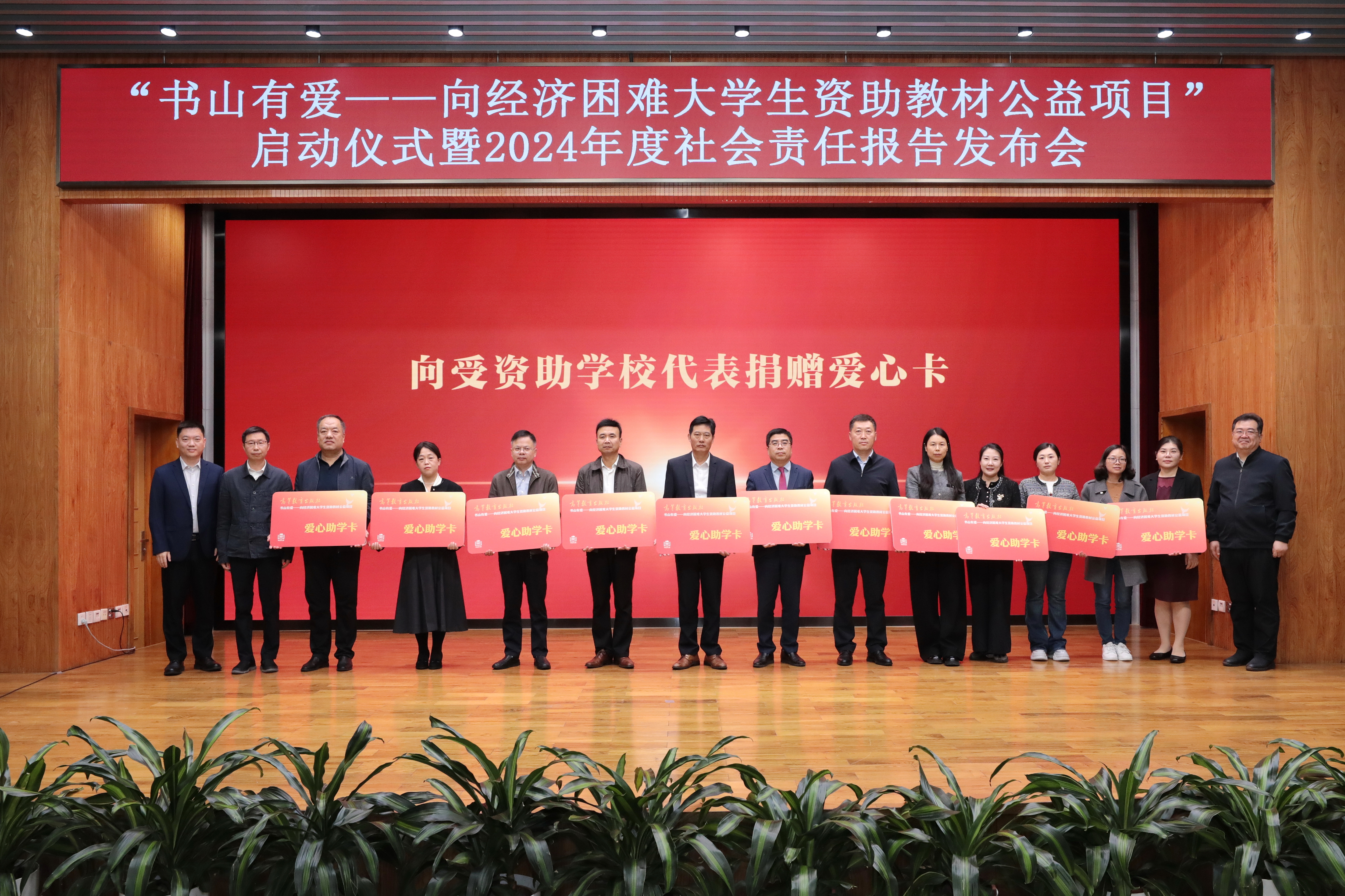 2025年10月11日,高等教育出版社“书山有爱”向经济困难大学生资助教材公益项目启动仪式暨2024年度社会责任报告发布会在京成功举办。中国出版协会副理事长兼秘书长王利明,全国学生资助管理中心党委书记、主任陈淑梅,副主任王俊,中国教育发展基金会副秘书长成梁,中国教育出版传媒集团副总经理周增宇,教育部宣传教育中心副主任杨晨光,中华慈善总会副秘书长曾春光;高等教育出版社党委副书记、总编辑谭方正,社党委委员、副总编辑贾瑞武,副社长、总会计师王卫忠,纪委书记张静,副社长叶波等出席会议。