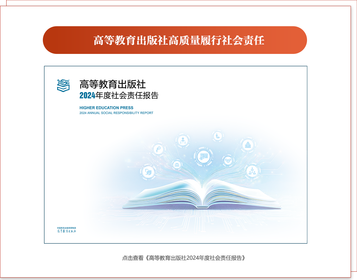 本次发布的《高等教育出版社2024年度社会责任报告》详细展示了高教社不断推动教材高质量建设、服务教育公平、促进学术繁荣、支持文化创新等方面的实践与成效,展现了高教社履行社会责任的坚实步伐。